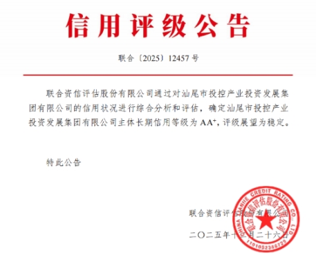 再創(chuàng)佳績(jī)!汕尾投控下屬產(chǎn)發(fā)集團(tuán)喜獲“AA+”主體信用評(píng)級(jí)